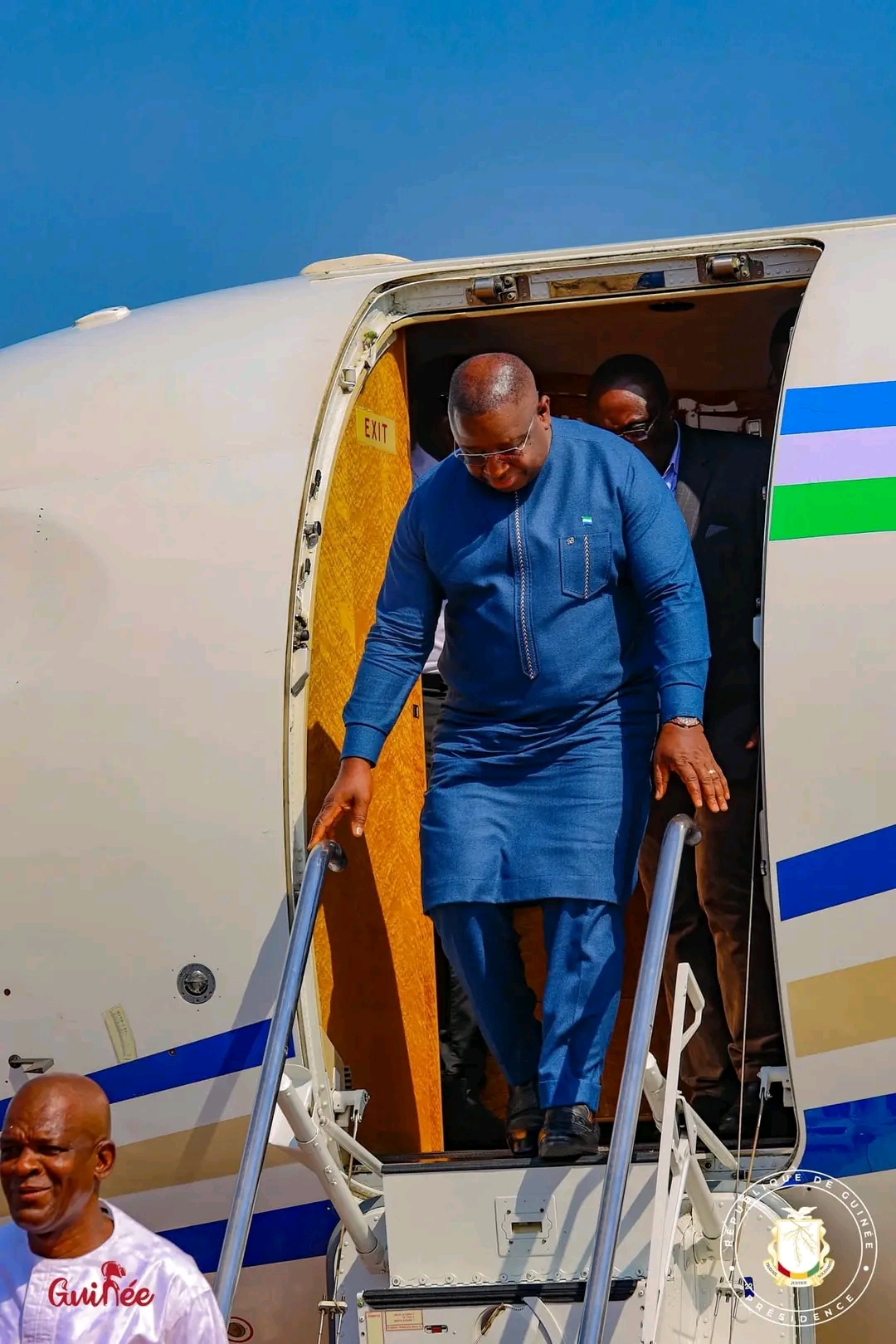Arrivรฉ pour une visite d’amitiรฉ, le Chef de l’Etat lรฉonais a รฉtรฉ accueilli en prรฉsence des Prรฉsidents des Institutions rรฉpublicaines, des membres du Gouvernement, des responsables des Forces de dรฉfense et de sรฉcuritรฉ, des corps diplomatique et consulaire accrรฉditรฉs en Guinรฉe.