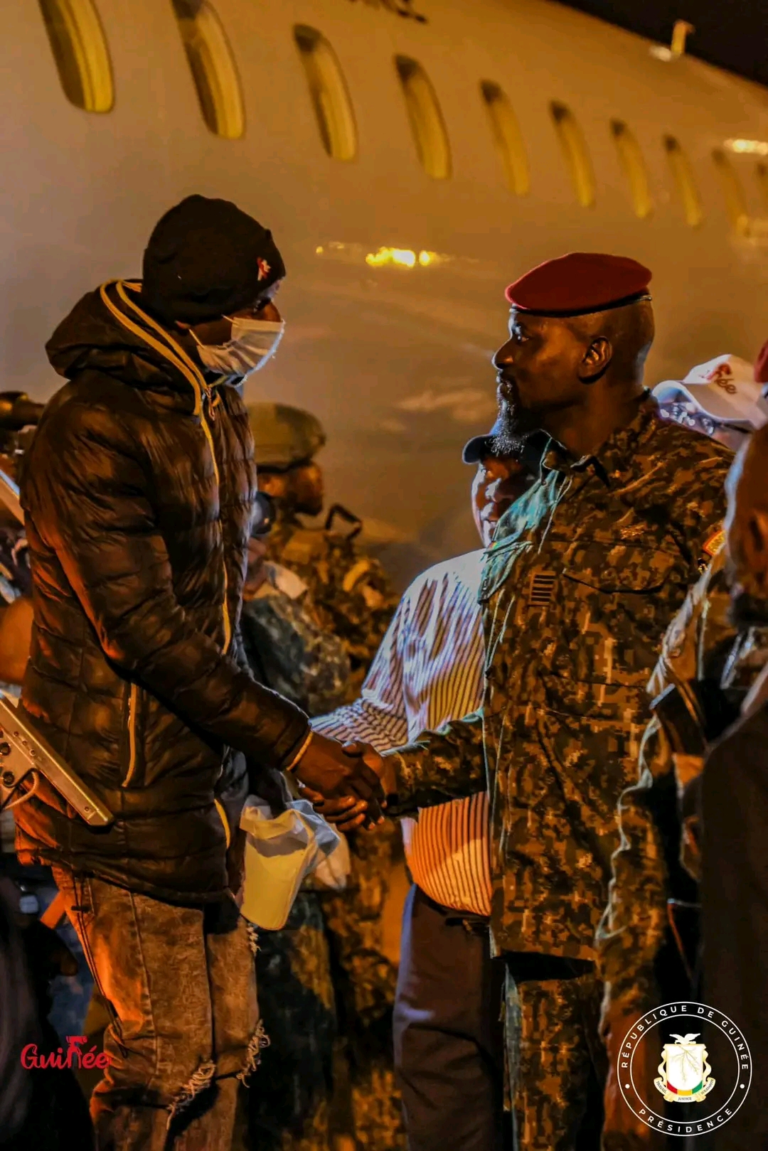 2 mars 2023Le Président de la Transition, Chef de l’Etat, le Colonel Mamadi Doumbouya, s’est rendu ce mercredi 1er mars à l’Aéroport International Ahmed Sékou Touré pour accueillir ses compatriotes guinéens venant de la Tunisie. Une délégation d’une cinquantaine de personnes conduite par le Ministre des affaires étrangères, de l’intégration africaine et des guinéens établis à l’étranger, Dr Morissanda Kouyaté.
