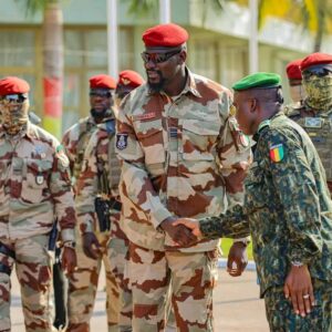 Le Prรฉsident de la Transition, le Colonel Mamadi DOUMBOUYA, a prรฉsidรฉ ce vendredi 20 janvier 2023 la cรฉrรฉmonie de prestation de serment de deux promotions d’รฉlรจves-officiers mรฉdecins de l’Ecole Militaire Interarmes (EMIA).