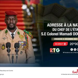 A la veille de la nouvelle année qui s’annonce, je voudrais exprimer au peuple souverain de Guinée y compris nos compatriotes établis à l’étranger, aux compatriotes alités et qui souffrent, aux frères d’armes en mission pour défendre la liberté et la démocratie, aux personnels diplomatiques accrédités dans notre pays, aux partenaires techniques et financiers ainsi qu’aux communautés étrangères qui ont fait le choix de vivre parmi nous, mes vœux de bonne et heureuse année 2024.