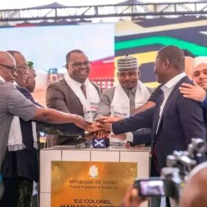 Dans son allocution le Premier ministre, Dr Bernard Goumou déclare : « 𝒍’𝒂𝒆𝒓𝒐𝒑𝒐𝒓𝒕 𝒊𝒏𝒕𝒆𝒓𝒏𝒂𝒕𝒊𝒐𝒏𝒂𝒍 𝑨𝒉𝒎𝒆𝒅 𝑺𝒆𝒌𝒐𝒖 𝑻𝒐𝒖𝒓𝒆, 𝒔𝒆𝒓𝒂 𝒖𝒏𝒆 𝒗𝒊𝒕𝒓𝒊𝒏𝒆 𝒅𝒆 𝒍𝒂 𝑮𝒖𝒊𝒏𝒆𝒆 𝒏𝒐𝒖𝒗𝒆𝒍𝒍𝒆 𝒂𝒗𝒆𝒄 𝒅𝒆𝒔 𝒊𝒏𝒔𝒕𝒂𝒍𝒍𝒂𝒕𝒊𝒐𝒏𝒔 𝒎𝒐𝒅𝒆𝒓𝒏𝒆𝒔, 𝒖𝒏 𝒑𝒆𝒓𝒔𝒐𝒏𝒏𝒆𝒍 𝒄𝒐𝒎𝒑𝒆𝒕𝒆𝒏𝒕, 𝒅𝒆𝒔 𝒏𝒐𝒓𝒎𝒆𝒔 𝒅𝒆 𝒔𝒖𝒓𝒆𝒕𝒆 𝒂𝒖 𝒕𝒐𝒑, 𝒅𝒖 𝒄𝒐𝒏𝒇𝒐𝒓𝒕 𝒑𝒐𝒖𝒓 𝒍𝒆𝒔 𝒑𝒂𝒔𝒔𝒂𝒈𝒆𝒓𝒔. 𝑰𝒍 𝒅𝒐𝒊𝒕 𝒓𝒆𝒔𝒕𝒆𝒓 𝒂𝒈𝒓𝒆𝒂𝒃𝒍𝒆 𝒆𝒕 𝒄𝒐𝒎𝒑𝒆𝒕𝒊𝒕𝒊𝒇. 𝑵𝒐𝒖𝒔 𝒅𝒆𝒗𝒐𝒏𝒔 𝒑𝒐𝒖𝒗𝒐𝒊𝒓 𝒓𝒆𝒗𝒆𝒏𝒅𝒊𝒒𝒖𝒆𝒓 𝒍𝒆 𝒎𝒂𝒄𝒂𝒓𝒐𝒏 𝒅𝒆 𝒓𝒆𝒇𝒆𝒓𝒆𝒏𝒄𝒆 𝒔𝒖𝒓 𝒍𝒆𝒔 𝒄𝒐𝒕𝒆𝒔 𝒅𝒆 𝒍’𝑨𝒇𝒓𝒊𝒒𝒖𝒆 𝒅𝒆 𝒍’𝑶𝒖𝒆𝒔𝒕. 𝑪’𝒆𝒔𝒕 𝒖𝒏𝒆 𝒗𝒊𝒔𝒊𝒐𝒏 𝒅𝒖 𝑪𝑵𝑹𝑫, 𝒔𝒐𝒖𝒔 𝒍𝒆 𝒍𝒆𝒂𝒅𝒆𝒓𝒔𝒉𝒊𝒑 𝒅𝒖 𝑷𝒓𝒆𝒔𝒊𝒅𝒆𝒏𝒕 𝒅𝒆 𝒍𝒂 𝑻𝒓𝒂𝒏𝒔𝒊𝒕𝒊𝒐𝒏, 𝒍𝒆 𝑪𝒐𝒍𝒐𝒏𝒆𝒍 𝑴𝒂𝒎𝒂𝒅𝒊 𝑫𝒐𝒖𝒎𝒃𝒐𝒖𝒚𝒂. 𝑳𝒂 𝑮𝒖𝒊𝒏𝒆𝒆 𝒅𝒆 𝒑𝒂𝒓 𝒔𝒂 𝒑𝒐𝒔𝒊𝒕𝒊𝒐𝒏 𝒈𝒆𝒐𝒔𝒕𝒓𝒂𝒕𝒆𝒈𝒊𝒒𝒖𝒆 𝒆𝒕 𝒔𝒐𝒏 𝒑𝒐𝒕𝒆𝒏𝒕𝒊𝒆𝒍 𝒅𝒆 𝒑𝒓𝒐𝒅𝒖𝒄𝒕𝒊𝒐𝒏 𝒅𝒆𝒗𝒓𝒂𝒊𝒕 𝒆𝒕𝒓𝒆 𝒄𝒂𝒑𝒂𝒃𝒍𝒆 𝒅𝒆 𝒄𝒂𝒑𝒕𝒆𝒓 𝒖𝒏 𝒕𝒓𝒂𝒇𝒊𝒄 𝒊𝒎𝒑𝒐𝒓𝒕𝒂𝒏𝒕 𝒅𝒂𝒏𝒔 𝒍𝒆 𝒄𝒊𝒓𝒄𝒖𝒊𝒕 𝒅𝒆𝒔 𝒆𝒄𝒉𝒂𝒏𝒈𝒆𝒔 𝒅𝒆𝒔 𝒑𝒓𝒐𝒅𝒖𝒊𝒕𝒔 𝒅𝒆 𝒗𝒂𝒍𝒆𝒖𝒓𝒔… »