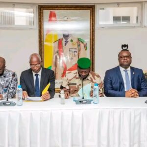 Le Ministre Secrétaire Général de la Présidence de la République a loué les efforts déployés par le Premier Ministre sortant, le Dr. Bernard Goumou, durant les 18 mois passés à la tête du Gouvernement. Il a notamment cité la conduite du dialogue social sur toute l’étendue du territoire national, les chantiers des infrastructures aéroportuaires et routières, la gestion de la crise liée à l’incendie du dépôt d’hydrocarbures de Kaloum, l’assainissement du fichier de la Fonction publique, et la signature des contrats de performance avec les ministères.