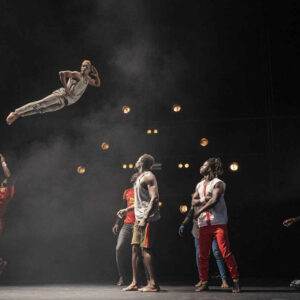 Les artistes, âgés de 18 ans à 32 ans, vivent et s’entraînent à Marseille depuis le début de la tournée du spectacle Yé ! en France au printemps 2022. Partout où ils se produisent, l’ambiance est électrique. Portés acrobatiques les propulsant dans les airs, pyramides humaines vertigineuses, corps-à-corps et contorsions s’enchaînent sur un rythme frénétique. Les acrobates se livrent à des rixes autour de bouteilles d’eau en plastique qui les laissent exsangues. Si les tableaux ont des airs d’apocalypse, la mise en scène de Yann Ecauvre est épurée.