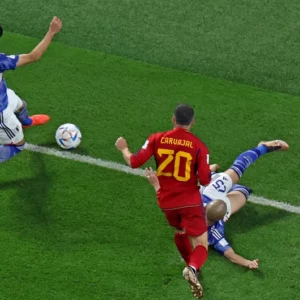 La victoire du Japon contre l’Espagne, responsable de l’élimination de l’Allemagne, jeudi soir, repose sur un but litigieux qui a continué de diviser au lendemain du match. A la 50e minute, Kaoru Mitoma s’arrache au bout de la surface pour tacler un ballon qui se dirigeait hors du terrain et le remettre devant le but, où Ao Tanaka le reprend pour porter le score à 2-1. Le ballon est-il sorti en six mètres avant d’être touché par Mitoma ? Dans un premier temps, l’arbitre assistant lève son drapeau pour le signaler, mais l’arbitre central décide, après discussion avec l’arbitre chargé de la vidéo mais sans visionner lui-même les images, de valider le but japonais. Sans convaincre tout le monde.