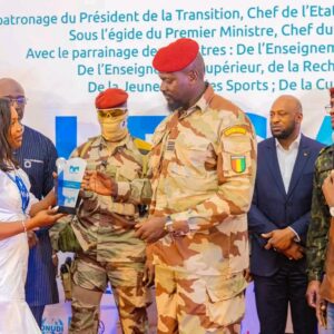 À cette heureuse occasion, les promoteurs du Salon ont gratifié le Président de la Transition d’une décoration, en reconnaissance de son implication dans l’accompagnement, la valorisation des initiatives juvéniles et socioculturelles.