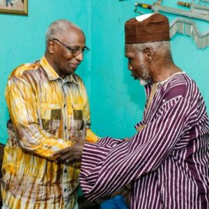 Siguiri, le 8 juin 2024 – Toujours dans le cadre de sa visite à Siguiri, le Premier ministre, Chef du Gouvernement, a effectué une visite de courtoisie à l’ancien député du RPG Arc-en-ciel, Honorable Sekou SAVANÉ. Cet homme, avec lequel il garde de beaux souvenirs, a été très ému par cette visite inopinée malgré l’agenda chargé du Chef du Gouvernement.