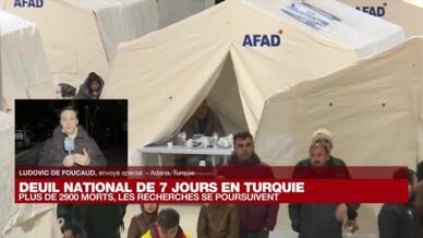 Dans la ville turque de Diyarbakir, à 350 km de l’épicentre, des dizaines de secouristes fouillent dans les décombres d’un immeuble de 11 étages, qui abritait 35 familles, explique l’envoyée spéciale de France 24.