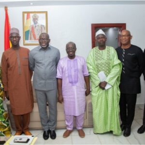 Le staff de la Mission d’Appui à la Mobilisation des Ressources Intérieures (MAMRI) échange avec le Ministre Mourana Soumah et ses proches collaborateurs