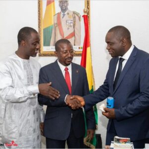 Conakry, le 11 avril 2024 – Le Ministre Directeur de Cabinet de la Primature, Mohamed Lamine S’y SAVANÉ, accompagné du Vérificateur général de la République, a présidé la cérémonie de passation de service entre le Secrétaire général Adjoint sortant, actuellement Ministre Secrétaire général du Gouvernement, Monsieur Benoît KAMANO, et le Secrétaire général adjoint entrant, Monsieur Fayimba MARA, au Palais de la Colombe.
