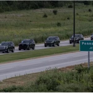 Le cortège du candidat républicain à la présidentielle, Donald Trump, quitte l'aéroport international de Milwaukee, le 14 juillet 2024, dans le Wisconsin. (JIM VONDRUSKA / GETTY IMAGES NORTH AMERICA / AFP)